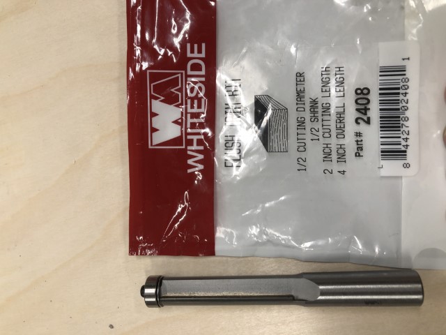 Flush trim bit April 19, 2024 WhiteSide QR: 009 Flush trim bit 1/2 CUTTING DIAMETER 1/2 SHANK 2 INCH CUTTING LENGTH 4 INCH OVERALL LENGTH Part# 2408