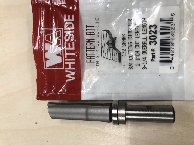 Pattern Bit 010 April 19, 2024 WhiteSide QR 010 Pattern Bit with 3/4 OD bearing 1/2 SHANK 3/4 CUTTING DIAMETER 2 INCH CUT LENGTH 3-1/4 OVERALL LENGTH Part# 3023